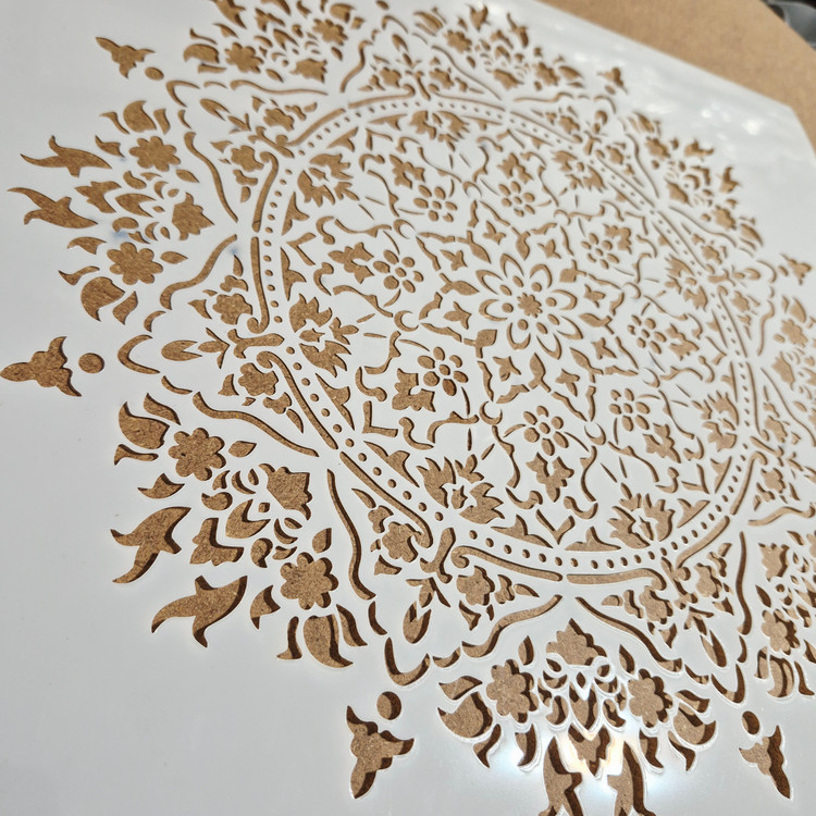 • طلق وارداتی سفید و ضخامت این جنس 300 میکرون یا 0.30 میلیمتر است. این جنس مرسوم استنسیل سازی های معتبر دنیا است. استحکام و ماندگاری این جنس در صورتی که هر بار بعد استفاده شابلون، شابلون شست شو شود، نامحدود است. به هیچ وجه پاره یا شکسته نمی شود. قدرت بالایی در انعطاف رو سطوح منحنی دارد. قابل شست شو است. در مقابل سوختگی با حرارت مستقیم نیز بسیار مقاوم است. قابلیت استفاده برای ورق طلا، برجسته کاری و رنگ کاری روی همه سطوح را داراست.. برای استفاده از این جنس باید هر 4 طرف شابلون را از کناره ها به سطح مورد نظر با چسب کاغذی یا پلاستیکی چسب بزنید. بهترین روش شستشو، شستشو با آب ولرم و اسکاچ نرم درون یک لگن در حمام است. حتما به خاطر داشته باشید بعد استفاده آنرا شست شو دهید.